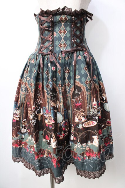 ミセス・ハロウィンアップルの奇妙な晩餐会柄スカート 黒 ミセス・ハロウィンアップルの奇妙な晩餐会柄スカート 黒 ミセス