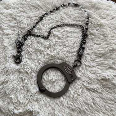 希少CUFFZ by Linzスワロフスキー手錠付ベージュ レザーバッグ ブランド古着】手錠 ハンドバッグ(ハンドバッグ)|Cuffz by